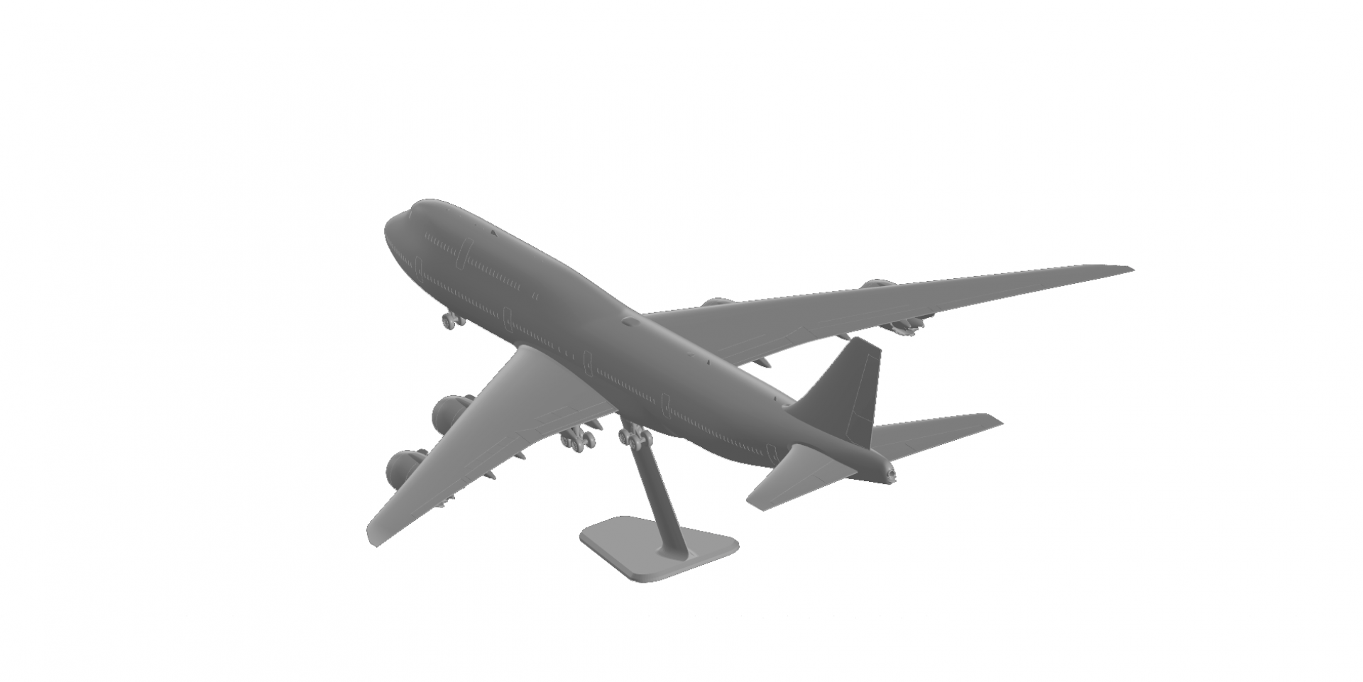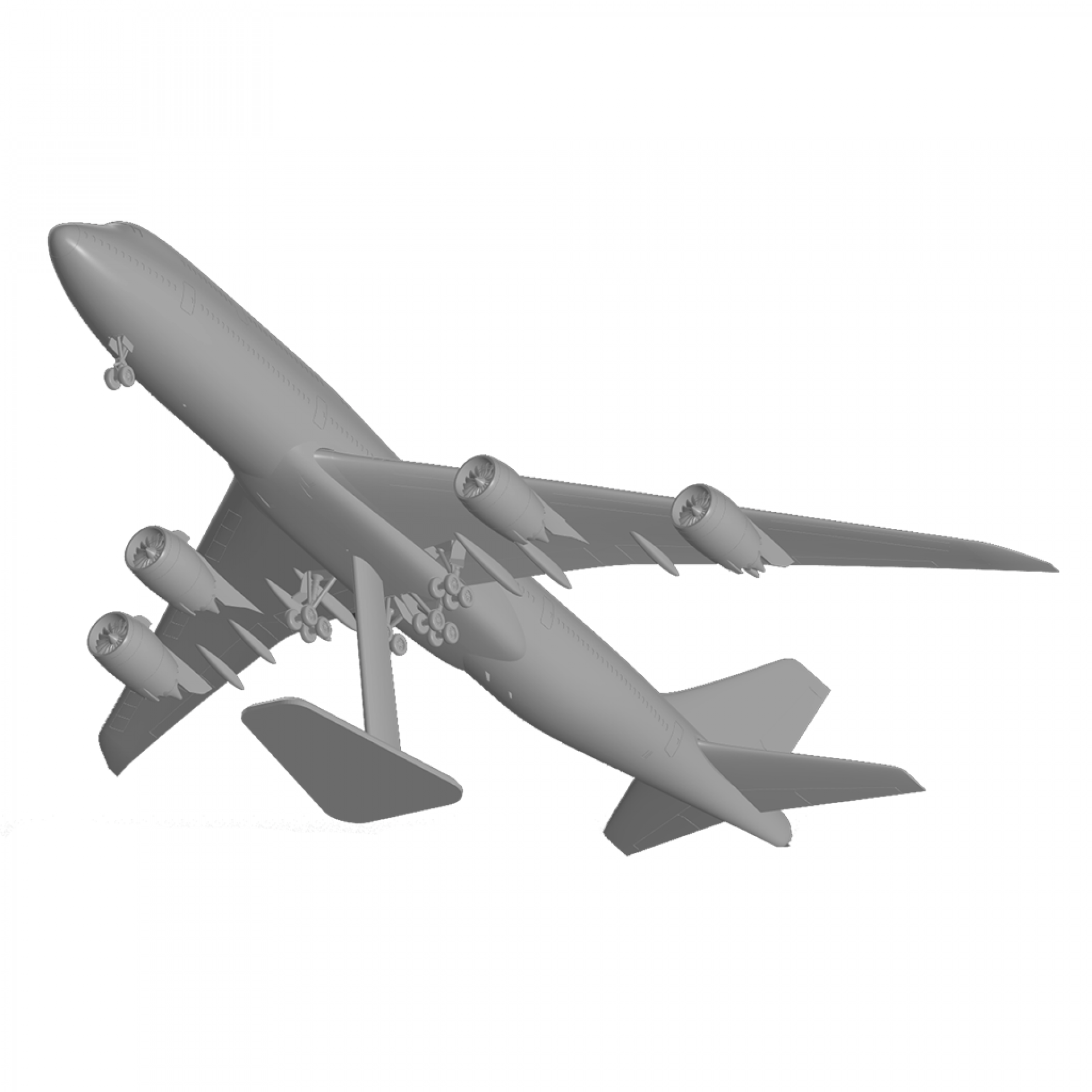 3д модель широкофюзеляжного удлиненного самолета боинг 747-8 в масштабе 1:144 для печати на 3D принтере. Разработан компанией Boeing Commercial Airplanes, является самой большой модификацией модели 747 в своем роде. После выпуска модели 747-400 компания рассматривала более крупные версии серии 747 в качестве альтернативы Airbus A380.